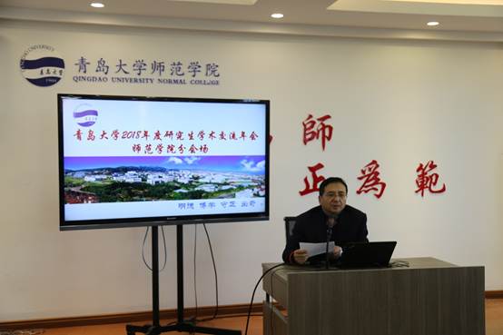为提高本院研究生学术交流与科研创新能力,持续高效的开展研究生学术工作,12月20日下午,我院在德润楼201举行了2018年青岛大学研究生学术交流年会。参加交流会的有师范学院院长李福华、副院长马勇军、党委副书记王成海、部分专业教师以及师范学院全体在校研究生。交流会由副院长马勇军主持。