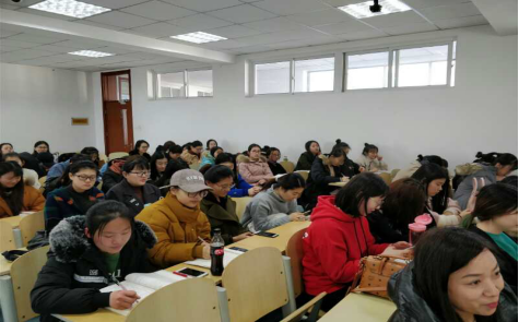 2018年3月8日,青岛大学师范学院学前教育系针对2014级学生,组织召开考录交流会,山东省商务厅幼儿园郑村老师(学前教育系2016届毕业生)、系主任王芳老师、辅导员李萌萌老师、2014级学前教育1班、2班班主任孙欣老师、赵映霞老师,以及2014级学前教育系全体学生参会,孙欣老师主持会议。