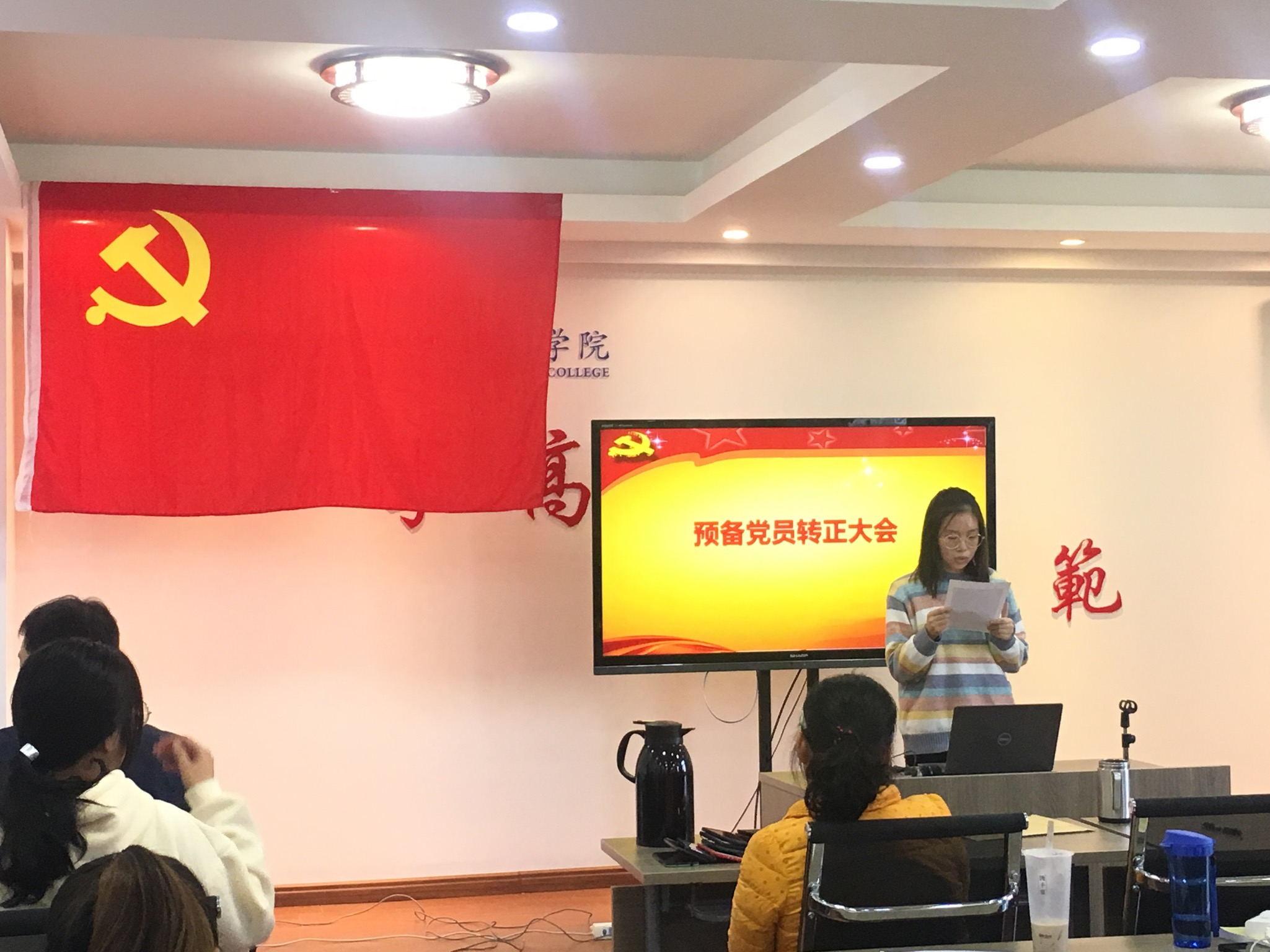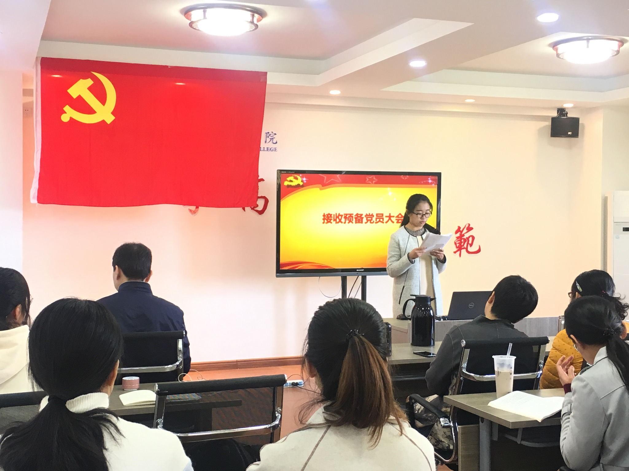 2018年11月15日,师范学院学生党支部在德润楼201会议室召开了接收预备党员大会暨预备党员转正大会,会议由学生党支部书记赵炜主持。