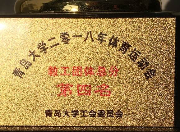在2018年10月11至12日举行的2018年青岛大学体育运动大会上,由我院17名教职工组成的代表队,在校运会上不畏强手,奋力拼搏,取得团体总分第四名的好成绩。