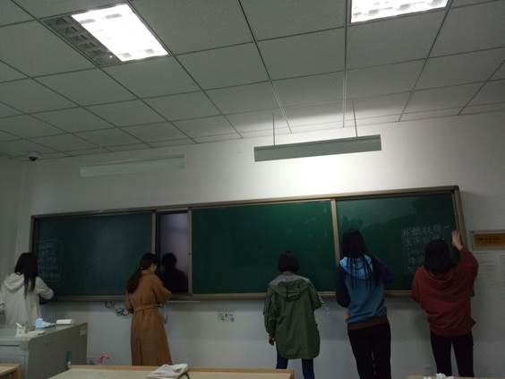 3月17日下午,我们2016级小教二班的一些同学在负责人的带领下,提前找好空教室,着手开始清理黑板、黑板槽和讲桌。
