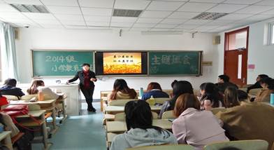 为使同学们新学期找准目标,“撸起袖子加油干”,青岛大学师范学院2014级小学教育数学班在班主任杨慧娟老师的带领下于2017年3月24日下午在德音楼415教室开了一场名为“树立自己的一个小目标”的主题班会。