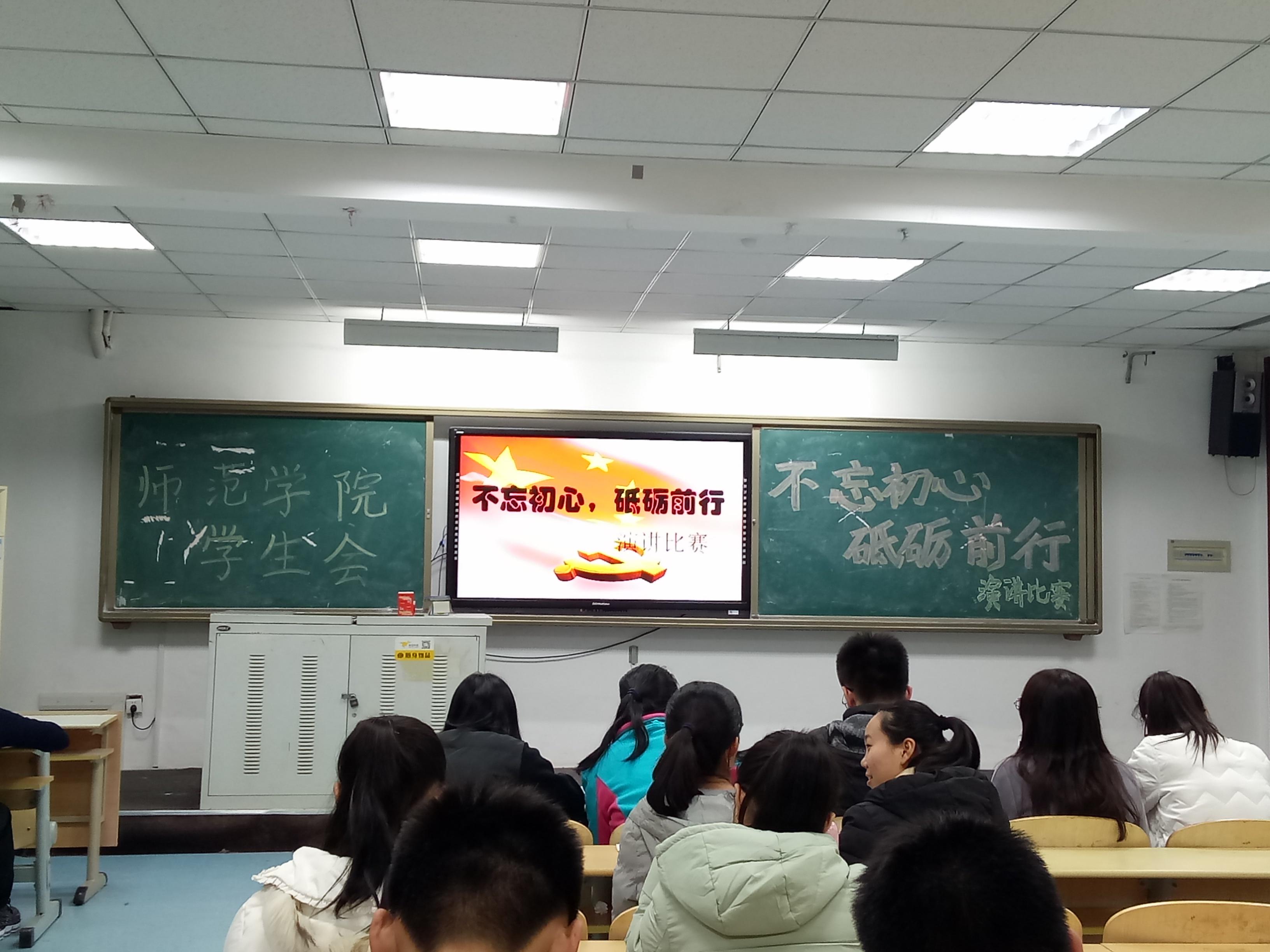 2017年11月21日19时,师范学院演讲比赛于师范学院德音楼举行。此次演讲比赛由青岛大学师范学院举办, 参赛人员为师范学院16,17级学生。活动目的为深入学习宣传贯彻党的十九大精神,教育和引导团员青年进一步坚定理想信念,增强大学生的责任感、使命感,激发大学生的担当精神,引导同学们志存高远,发奋成才,回报社会,报效祖国。
