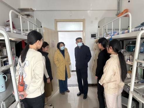 2月12日下午,学院党委书记尹增刚、院长孙百才、党委副书记夏锡梅带领全体学工队伍前往浮山校区泓园、浏园、滢园、汇园学生宿舍,查看同学们返校情况并与学生面对面亲切沟通交流。在交谈中,院领导详细了解同学们的假期学习状态、开学准备、复习情况、就业情况。叮嘱同学们在开学后认真准备考试,尽快转变生活状态,积极锻炼身体,全身心投入到新学期的学习、生活中,为新的一年打下坚实基础。