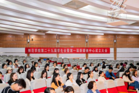 10月12日下午,我院在学术报告厅举行第二十九届学生会暨第一届新媒体中心成立大会,党委副书记夏锡梅、学工办主任姜彬、团委副书记张宁、辅导员李萌萌、潘婷、第二十九届学生会全体成员及第一届新媒体中心全体成员出席会议,大会由第二十九届学生会副主席郝嘉仪主持。