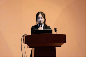 新生志愿者代表江羿漩发言。她表示,在日后的工作中,会带着饱满的热情和积极的求知欲,不断成长与进步,更好的投入学生会工作当中,在学生会的工作中遇见更好的自己。