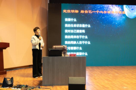 原红以“品问人生,无问东西”为主题,从“思”“学”“悟”“行”“创”“健”六个角度指出我们该如何幸福生活。她建议每个人都应该“定位明标”,以此来给自己一个心安理得、愉快工作的理由;并以“我的行囊”这一作文为启发,以自己的故事为例子,指出教师不仅是一个职业更是一份事业,陶冶了同学们的道德情操;以“何为教育之道”“何为教育之器”这两个问题引导同学们思考,点明了教育的本质,随后,她向同学们分别介绍了“医生”“农民”“雕刻家”“厨师”这四种人折射出的师道,并阐述什么是会教的老师,为同学们如何去教指明了方向。