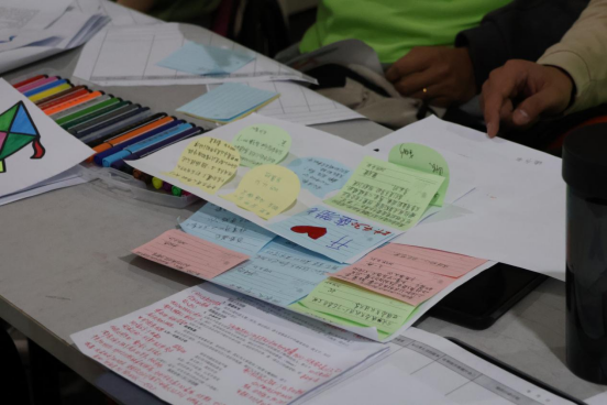 活动最后,志愿者们和学员们共同设计、填色纸鸢,寄托对美好生活的祝愿,并在心愿小鱼贴上写下对活动的感受,留下春日的记忆。