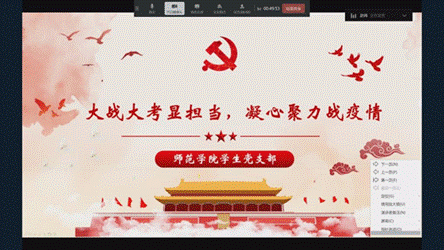 2020年3月18日晚,师范学院学生党支部通过钉钉网络平台开展以“大战大考显担当,凝心聚力战疫情”为主题的主题党日活动,学生党支部书记赵炜、团委书记李萌萌、辅导员孙振红以及全体学生党员参加本次活动。