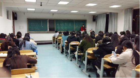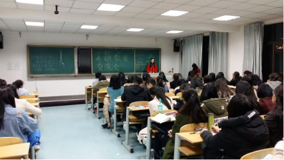 会议伊始,同学们热烈欢迎王主任的到来,并对王主任和各位学姐们在百忙之中抽出空来,专门参与这次的交流会表达了感激之情。随后,各位学姐一一上台来,向同学们分享了自己的考研、考教师资格证和英语四六级考试的历程与感悟,并向学弟学妹们传授了自己的学习方法和学习技巧。