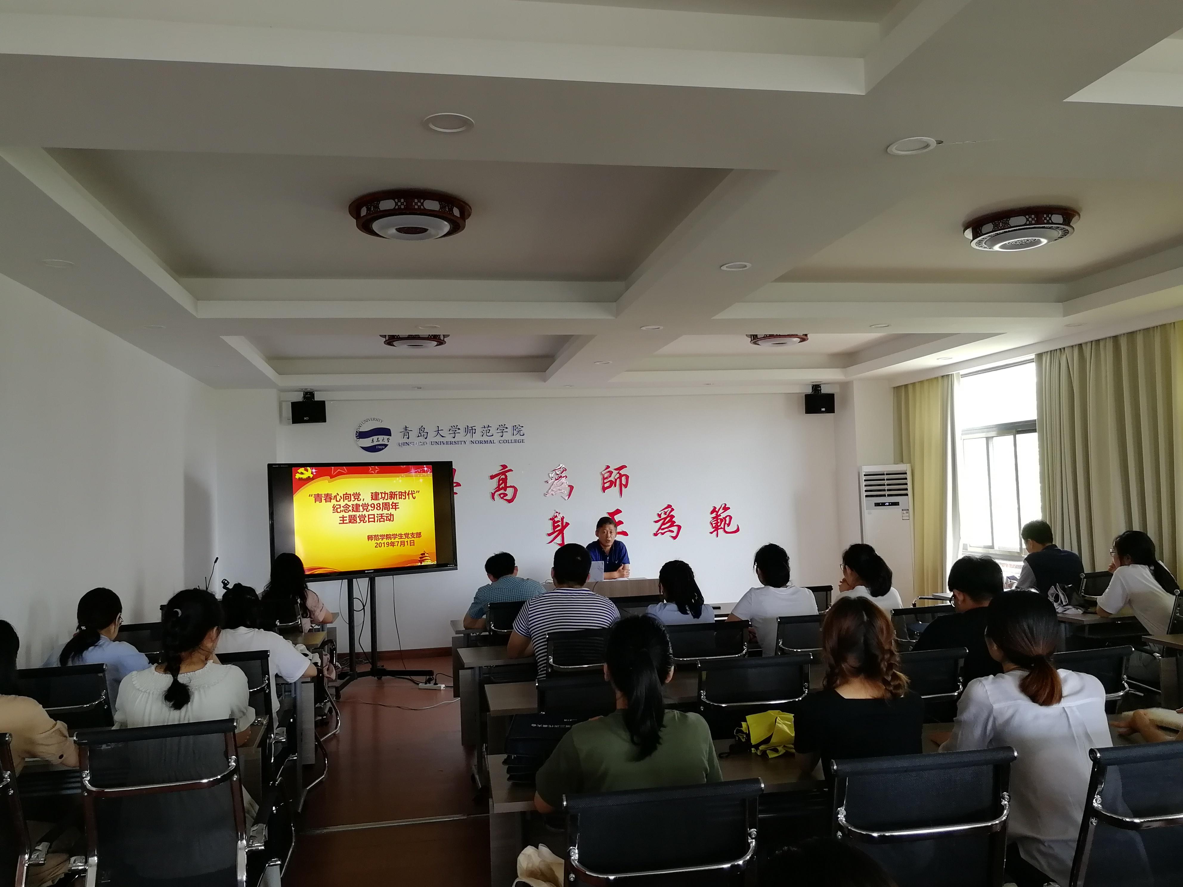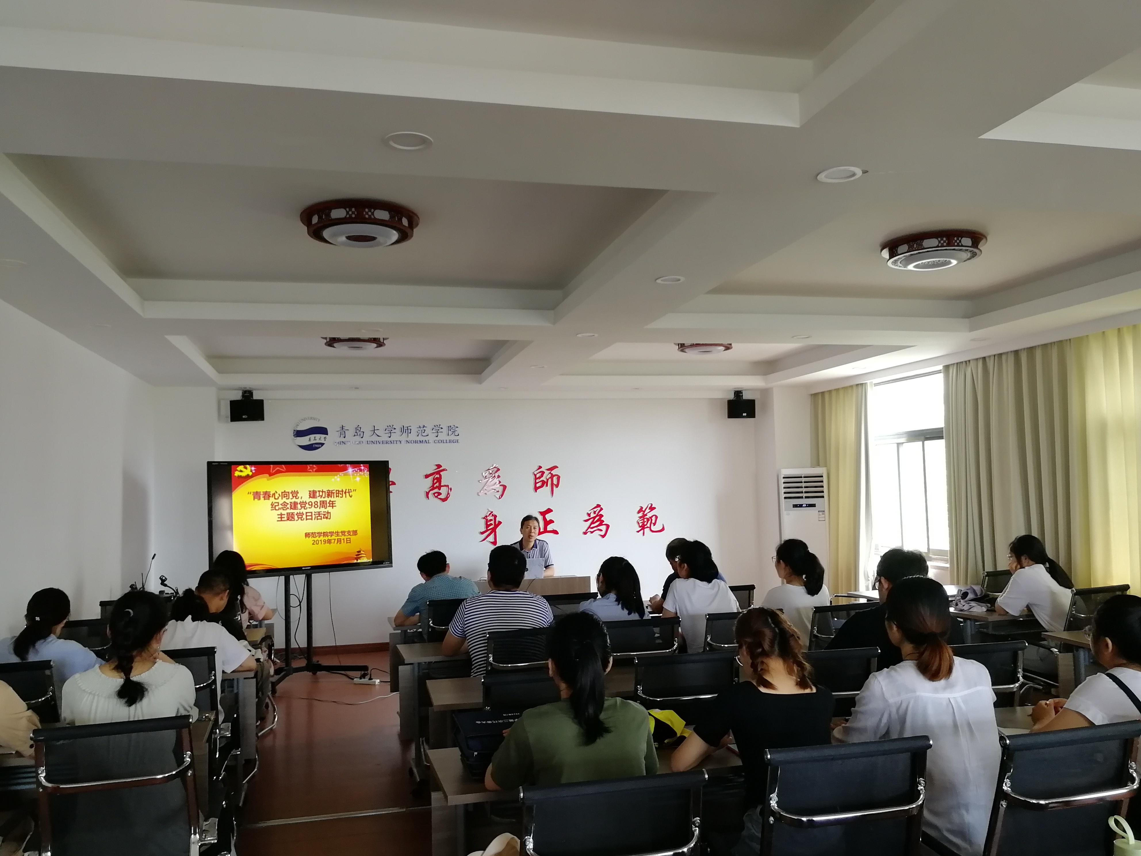7月1日上午,师范学院学生党支部在德润楼201会议室开展“青春心向党,建功新时代”主题党日活动,师范学院党委副书记王成海以及支部全体学生党员、入党积极分子参加本次活动,活动由学生党支部书记赵炜主持。