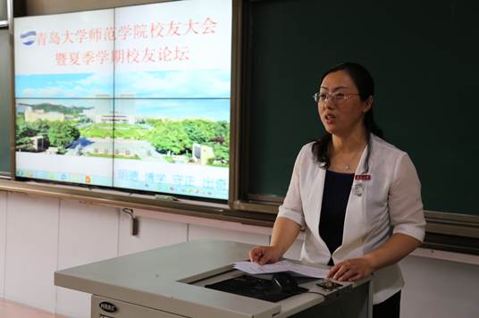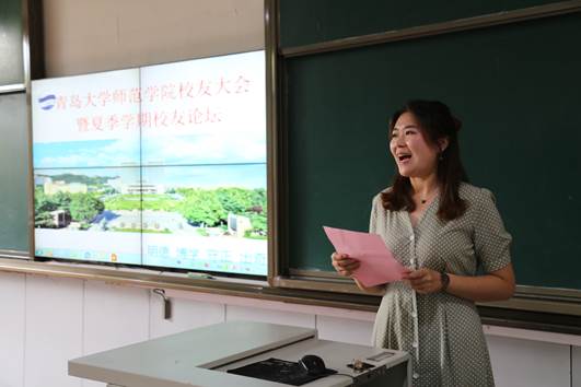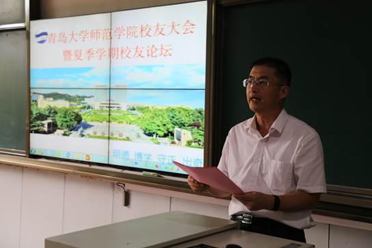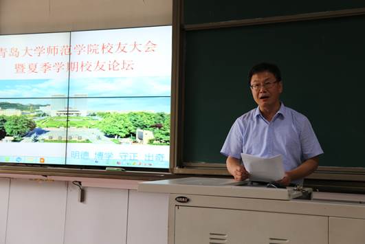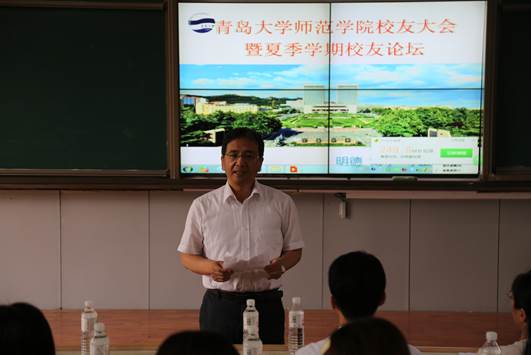 在这山青海碧、五彩缤纷的七月,师范学院小学教育、学前教育、教育技术、应用心理学四个专业的历届毕业生代表和教育学研究生代表,共有近百名校友返校参加活动。2019年7月9日上午9点,师范学院校友大会暨夏季学期校友论坛在德音楼西阶梯教室隆重举行,青岛大学合作发展处处长,校友办主任张燕出席会议,学院党政领导、校友代表、教师代表和学生代表参加会议。会议由师范学院副院长马勇军主持。