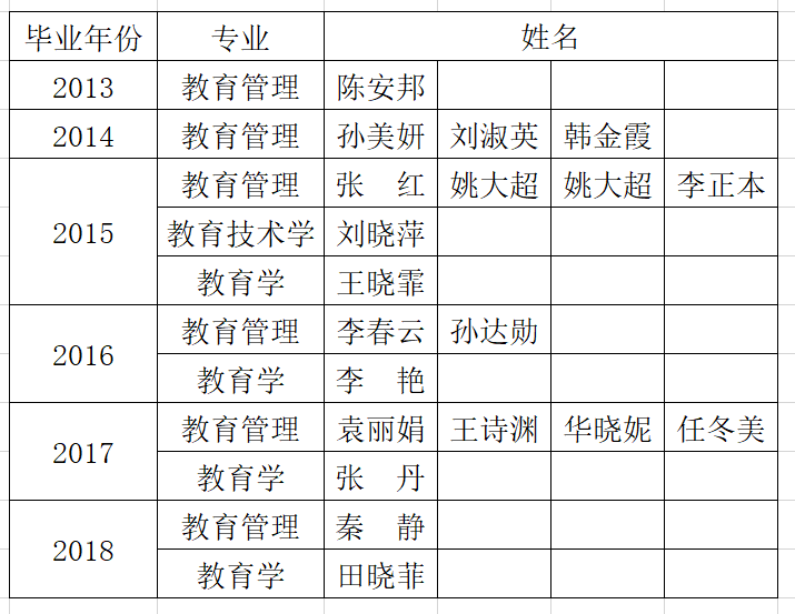 2013-2018年研究生毕业校友