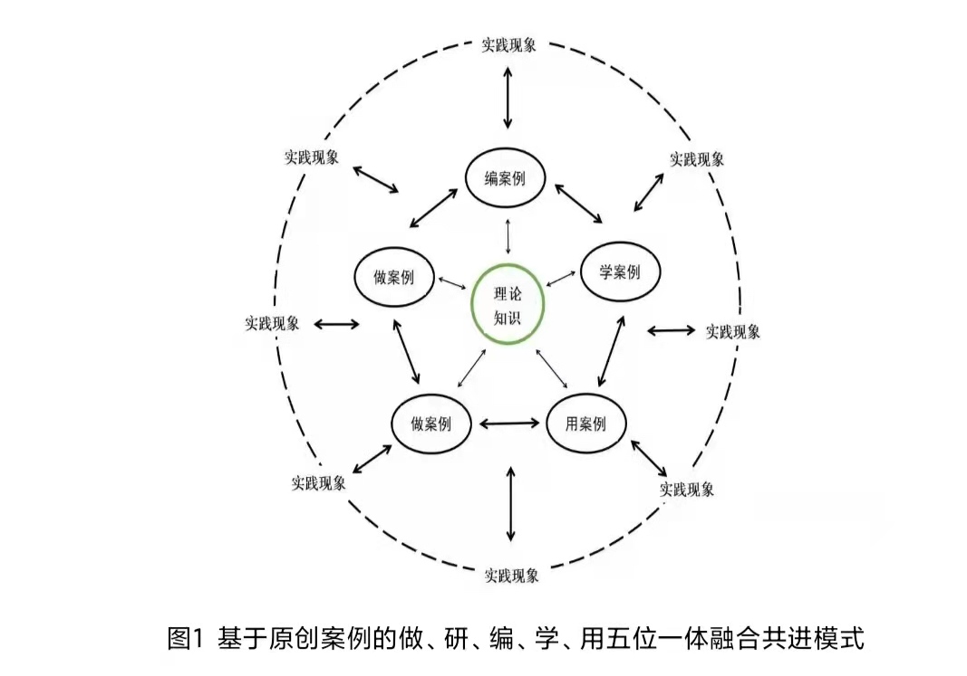 原创案例“五位一体”融合共进模式,倡导原创案例“做、研、编、学、用”五个环节互为条件、交互作用,形成了一个既封闭又开放、多向互动的环路,为教育硕士在封闭逻辑的理论体系和开放复杂的教育实践之间建立实质的关联。