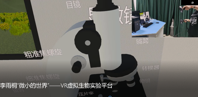 《VR虚拟生物实验平台》使用VR头显、蓝牙VR手柄进行交互,通过点击触发事件、多物体识别进行生物知识的科普,采用模型直观地展示细胞及其分子的结构,另外增加3D动画体现物质的运动过程。通过VR技术将生物中繁杂而难以理解的生物模型展现出来,在增加交互兴趣的同时,让使用者深入理解生物知识。