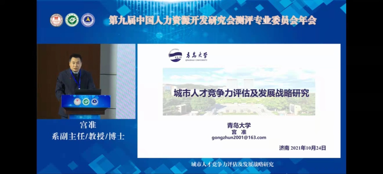 10月23-24日,第九届中国人力资源开发研究会测评专业委员会年会在济南山东青年政治学院举行。我院宫准教授主持大会人才测评实践分论坛并在大会做主题报告。与研究生张美倩、赵方圆、王辰、原颖慧合作的论文《人才竞争力评估及发展战略研究——以青岛市为例》获评年会优秀论文。
