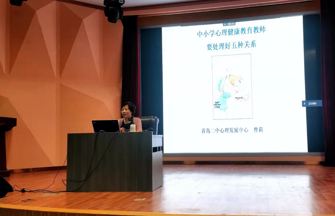 曾莉围绕“心理教师要处理好五个关系”的主题展开,她强调:作为未来的一名中小学心理健康老师,一定要处理好与领导、与老师、与家长、与学生、与自己的关系。她结合自己25年的教学经验,阐述了处理好这五个关系的具体措施。在与领导相处时,曾莉提出要“先有为后有畏”,心理老师要在工作中积累大量案例,不断进行课题研究,同时还要利用心理健康的知识帮助领导解决棘手的问题,用事实说话让领导明白心理健康教育是有用的。在与老师相处时,她认为心理老师是其他学科老师的帮助者,学科渗透也是心理健康教育的一个重要途径,一方面心理老师要给班主任进行心理健康教育的相关培训,另一方面,心理老师也要积极地关注其他老师及其家庭成员的心理状态。在与家长沟通时,曾莉认为要以平等、尊重为谈话基础,永远给家长希望但不盲目乐观,她特别强调,沟通的技巧是第二位的,学习和研究家庭教育的理论与实践是第一位的。在与学生相处时,曾莉特别强调要做学生的知心朋友与人生导师,心理老师不仅要上好课,还要能够与学生教学相长,不断思考教育的问题与真谛。最后,曾莉认为处理好与自己的关系是持续从事心理老师的基础和核心,因此心理老师应该要不断提高自己的实践水平和专业水平,合理的处理自己的情绪问题。