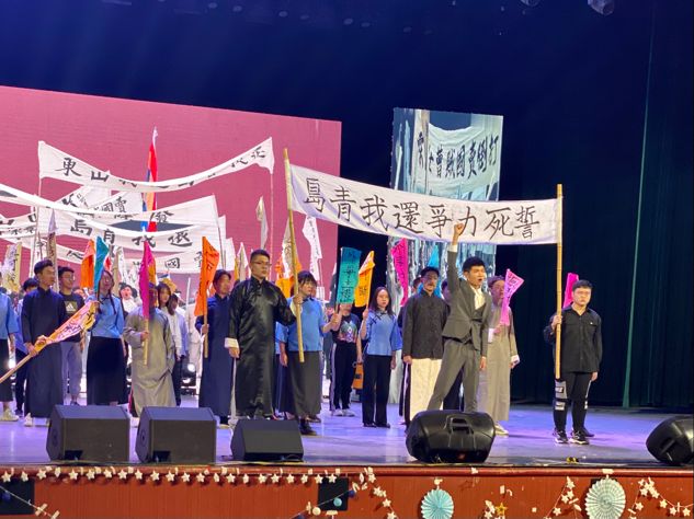歌会在舞蹈《Take Me Home》中拉开帷幕,展现了师院学子的青春活力与朝气。歌会中,各类舞蹈精彩纷呈:舞蹈《青莲》、《Ponzona》演绎初夏温柔,燃起青春焰火,带给现场观众独一无二的视觉盛宴;器乐表演《新编十面埋伏》、《若能绽放光芒》等独出心裁,宛若林籁泉韵,令人心旷神怡;歌曲《在水一方》、《等你下课》、《追梦赤子心》等将青春的点点滴滴化作音符,用梦想编织旋律,汇成骊歌,余音绕梁;舞台剧《红色的孕育》诉说着革命先辈们的无悔人生,演绎出艰苦年代的大义凛然,彰显出师院学子对党史学习教育的创新与传承。