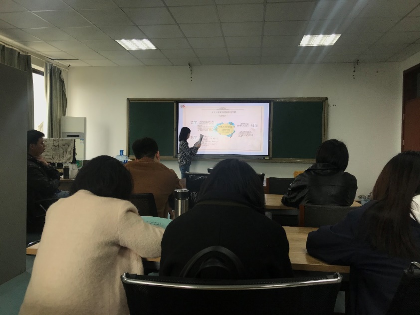 最后进行分享的是20级研究生王霓虹。她围绕书中的“美育”内容,对美学的产生与起源、美学意义以及美育在中国发展与传播的途径进行详细阐述。正如书中所言,“我们所建立的理论是我们自己心灵里长出来的,也许有借鉴,但不会去做任何移植,而只是按我们本来的理解去做的”。
