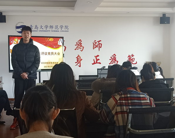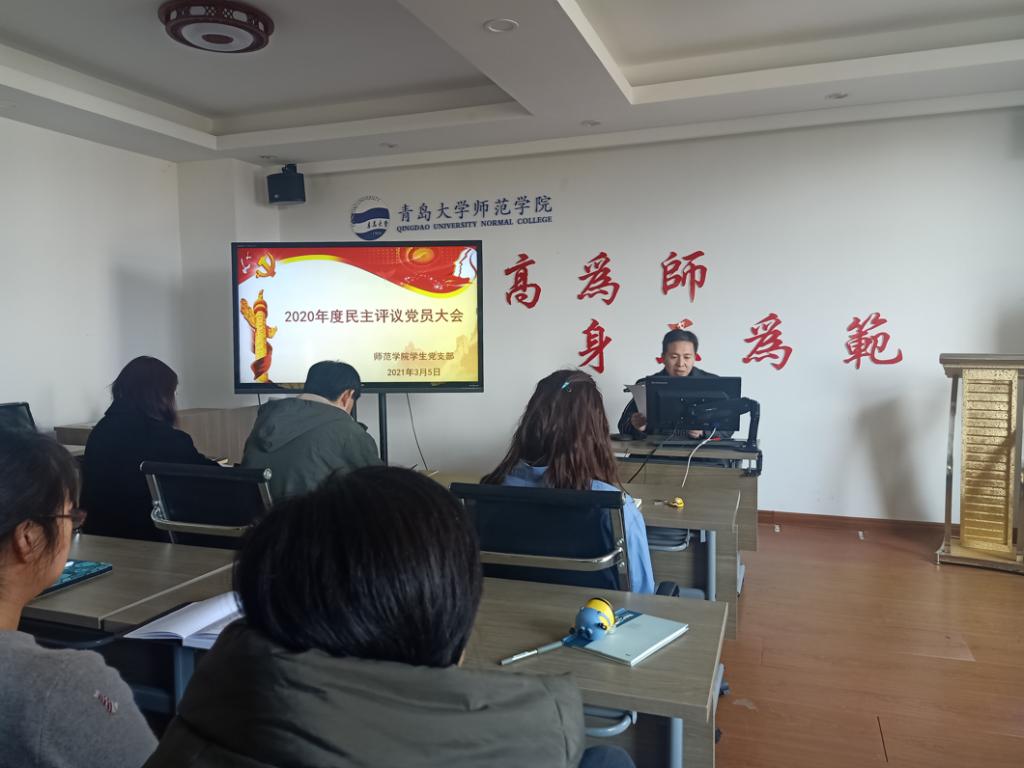 3月5日下午,师范学院学生党支部在德润楼201会议室召开了2020年度民主评议党员大会,支委会宣传委员张宁主持会议,党支部书记赵炜及全体支部成员参加会议。