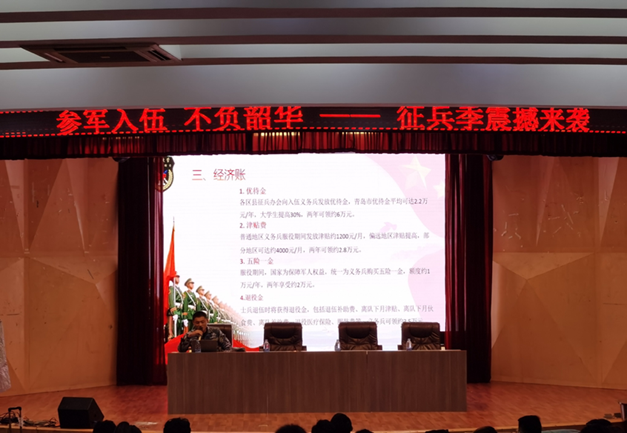 通过本次入伍宣讲,青岛大学学生对入伍相关的问题有了进一步了解,也更加坚定了部分学生入伍的决心。当兵入伍,不负韶华;为国争光,书写芳华!希望广大同学能够积极响应,把爱国之心化为报国之行,在军营的历练中书写多彩绚丽的青春篇章!