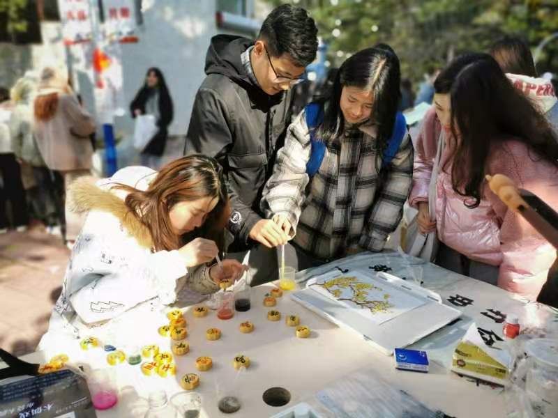 11月30日中午,中国文化概论课程研习活动——非物质文化遗产展示活动在青岛大学浏园食堂门口顺利开展。本次活动由青岛大学师范学院学前教育专业孙欣老师组织,2019学前1班、2班的全体同学参与。同学们将网上购买的手工材料与生活中的原材料相结合,秉持“融非遗于生活,蕴专业于传承”的理念,制作出源于生活,富有情趣,简单易行的非遗作品。