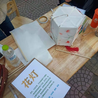 这是花灯展示和猜迷现场。同学们在花灯制作过程中,将传统梅兰竹菊等纹样加入了其中,使花灯极具欣赏性。同时,还准备了150道灯谜。答对的观众可以获得糖果或者一盏小花灯,吸引观众们纷纷前来一测脑力。一位退休的老师和一位文学院的女同学均猜对了5道灯谜,并列榜首。