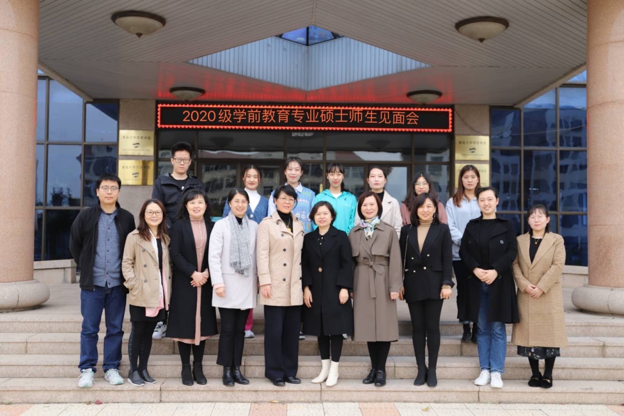 11月9日下午,师范学院学前教育专业2020级硕士研究生师生见面会在德润楼301会议室举行。校外实践导师薛梅、辛明、阎莉、刘海岩、苏卫晗,校内指导教师王芳、何京玉、孙欣、卜凡帅、彭辉,全体2020级学前教育专业硕士研究生参会。