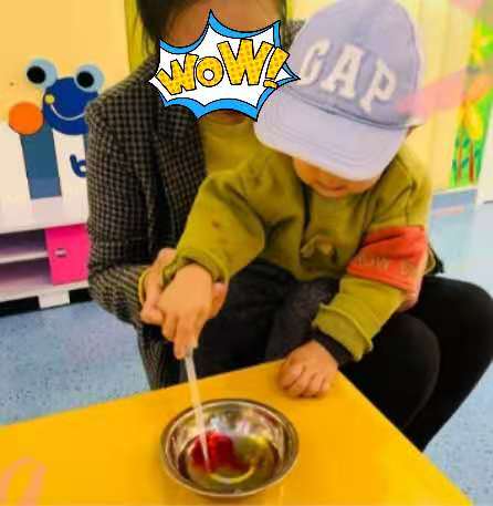 一组同学们带来的是“香薰石膏”手工活动,幼儿们自己动手,通过不断地搅拌将石膏粉、消泡剂、香薰精油和颜料完美地配合在一起,让幼儿在制作中感受动手的快乐。
