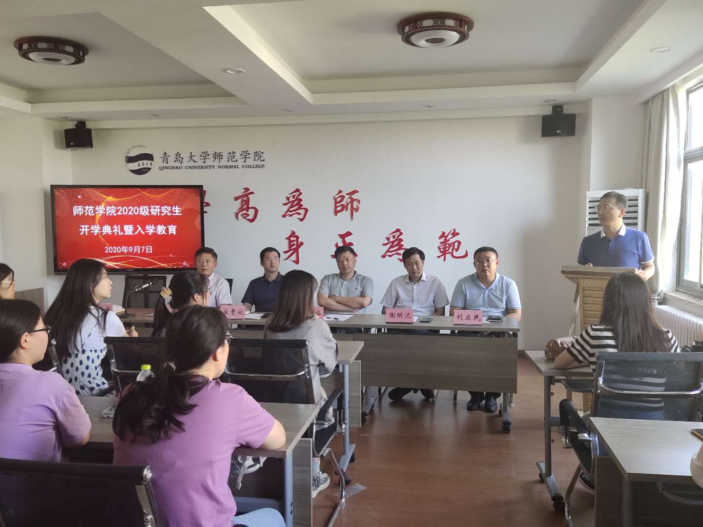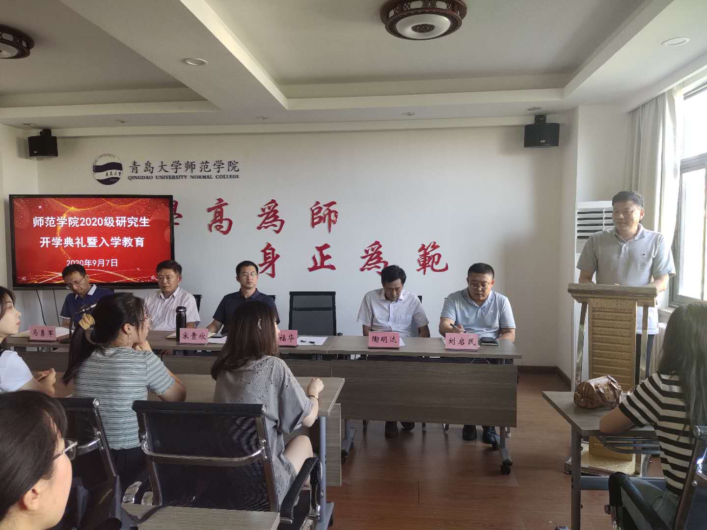 9月7日,师范学院在德润楼201会议室举行2020级研究生开学典礼。学院党委书记宋贵欣、院长李福华、副院长陶明达、马勇军、刘启民出席,教师代表、在校研究生代表及2020级全体研究生参加。会议由党委副书记王成海主持。