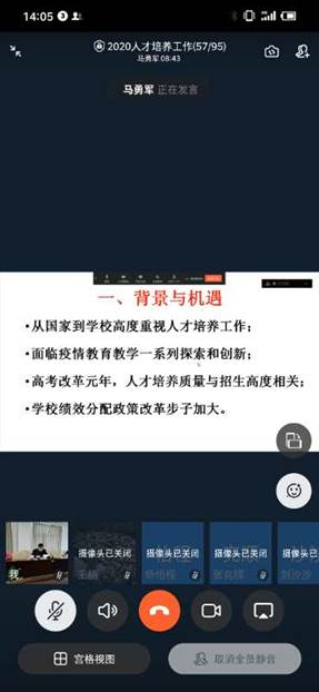4月27日下午,师范学院采取现场与钉钉平台视频会议结合的方式召开人才培养工作部署会。学院领导班子成员,教科办、研究生办和学工办员工在德润楼301会议室参会,其他教职工采取在线观看视频形式参会,会议由学院院长李福华主持。