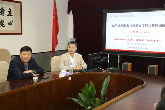 12月13日上午,海南师范大学教育学院沈有禄教授在德润楼301会议室进行了“如何选题国家社科基金与开展调研”的学术报告。本次会议由李福华院长主持。青岛教育发展研究院教师、硕士生听取了报告。