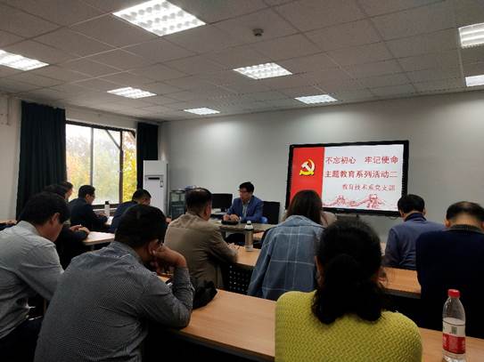 10月24日,我院教育技术党支部在德晖楼330教室开展“不忘初心、牢记使命”主题教育党课。会议由支部书记牛丽凤主持。学院党委书记宋贵欣、副院长刘启民,系全体教师、研究生、学生党员参加会议。