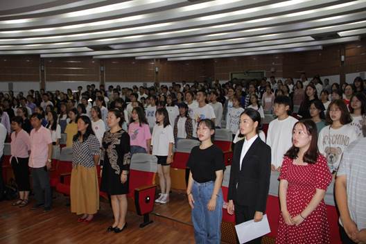 院长李福华与同学们交流了师范学院的历史和发展趋势,亲切的与同学们分享交流学习生活经验。希望2019级新生要珍惜大学时光,树立远大理想,勤学笃实,成为社会发展的推动力量。伴随熟悉的青大校歌,此次开学典礼圆满结束。
