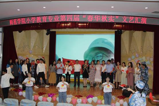 2019年9月29日上午,师范学院小学教育专业在德润楼报告厅成功举办第四届“春华秋实”经典诵读活动。师范学院副书记王成海、师范学院副院长马勇军,学院各职能部门、小学教育系的老师们,小学教育专业的校外导师代表,优秀毕业生代表,小学教育2017级、2018级、2019级学生一起参加了本次活动。