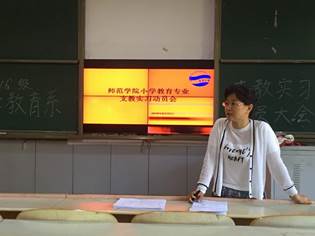 8月30日上午,小学教育系在德音楼115教室召开了2019支教实习动员大会,杨慧娟老师主持动员大会。