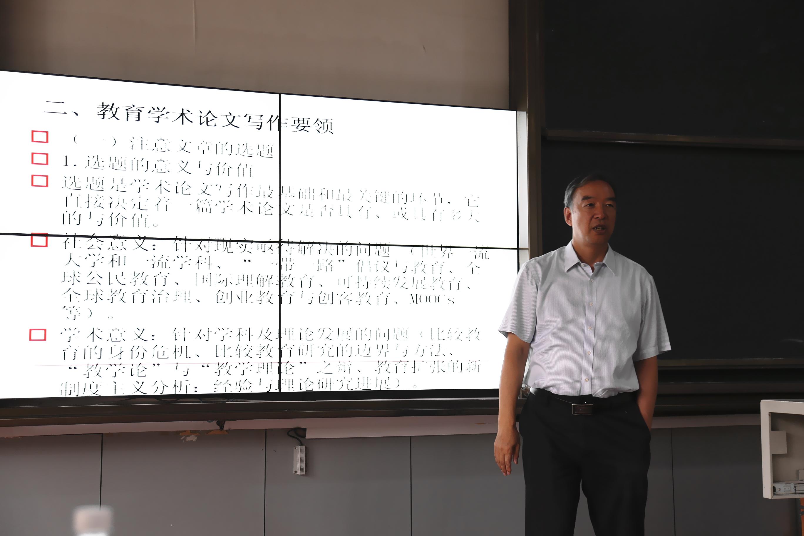 9月15日下午13:00,学前教育系在德音楼116教室举行了学术讲座:“教育学术论文的写作与发表”,报告专家为北京师范大学国际与比较教育研究院院长刘宝存教授,参加本次报告的有学前教育系教师、研究生、本科生及幼儿园教师。