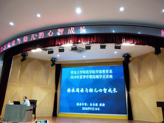 2018年9月14日上午,青岛大学师范学院学前教育系夏季学期高端学术讲座——《绘本阅读与幼儿的心智成长》在青岛大学师范学院学术报告厅举行。