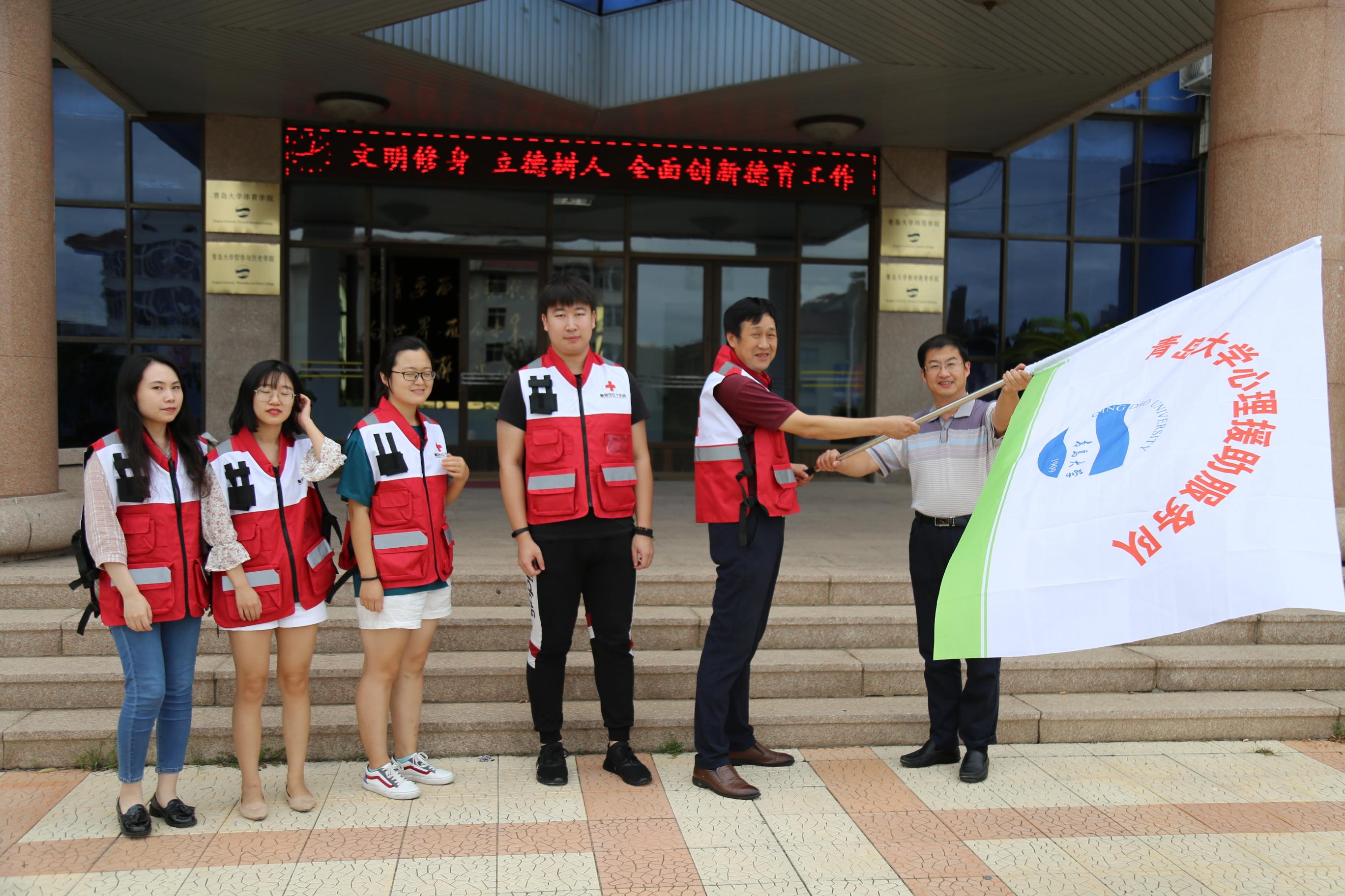 为尽快帮助山东寿光受灾地区灾后重建,支援灾区人民开展抗灾自救,受寿光市心理卫生协会邀请,青岛大学、青岛市红十字会派出专业力量帮助寿光开展灾后心理援助工作。青岛大学组建了心理援助服务队,五人作为先遣队伍,由青岛红十字应急心理志愿者服务队队长、青岛心理与精神健康研究院院长、青岛大学师范学院副院长、心理学系主任陶明达教授亲自带队,王海燕、梁宜铭、刘雅茜、李丹阳作为队员,于下午两时从青岛大学师范学院出发,青岛大学师范学院党委书记宋贵欣代表青岛大学和青岛大学师范学院为此次前往寿光的心理援助队授旗并送行。