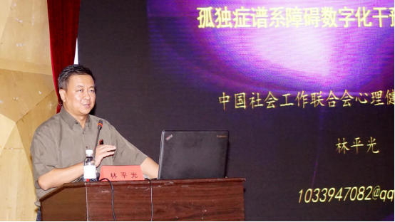 8月16日下午两点,林平光主任作《孤独症谱系障碍数字化干预技术与策略》主题讲座,林平光主任讲解了孤独症谱系障碍早期干预的重要性,进一步叙述了以数码听觉统合训练(DAIT)、视觉干预训练(含评估)、梦幻海豚屋及体感互动游戏训练、康复机器人(机器宝宝)等为代表的数字化干预技术。