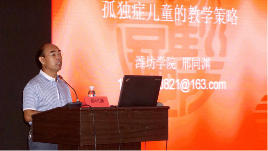 8月19日,上午由潍坊学院邢同渊教授作《孤独症儿童的教学策略》主题报告。邢同渊教授是特殊教育、特殊儿童随班就读领域研究专家,发表多篇相关著作,主要讲解了结构化教学的原则、优点和策略。下午由来自美国的娄潇方作《自闭症儿童问题行为的原因剖析、介入及预防策略研究》培训,娄潇方老师结合在美国从事特殊教育的经验,从应用行为分析角度向大家解释了自闭症儿童问题行为的产生原因、行为的功能以及行为功能的干预策略与方法。