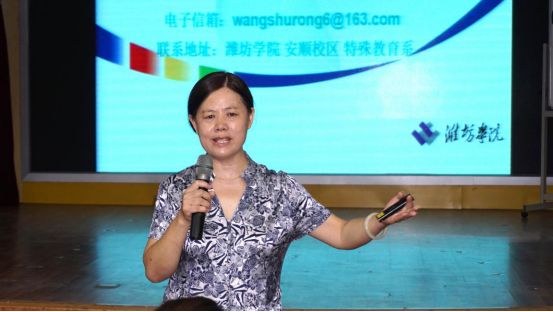 8月18日,培训第三天由潍坊学院王淑荣教授进行《孤独症谱系障碍感觉统合训练》主题讲座。王淑荣教授是自闭症康复研究领域专家,主讲课程有孤独症儿童的心理与教育、特殊儿童言语训练、特殊儿童早期干预,发表多篇优秀论文和著作。王淑荣教授上午讲解了感觉统合理论,主要从概念、神经生理学基础、失调表现及原因分析、训练方法等方面展开,下午着重讲解了感觉统合训练评估方法。学员学习积极性高涨,课程结束后仍留下许多学员与王教授进一步探讨学习。