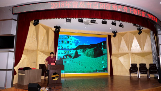 8月21日,培训最后一天选在了第一海水浴场旁边的青岛市梦翔康复中心学校。上午学员听取了胡磊博士《自闭症谱系障碍(ASD)&应用行为分析(ABA)的干预技术》主题讲座。