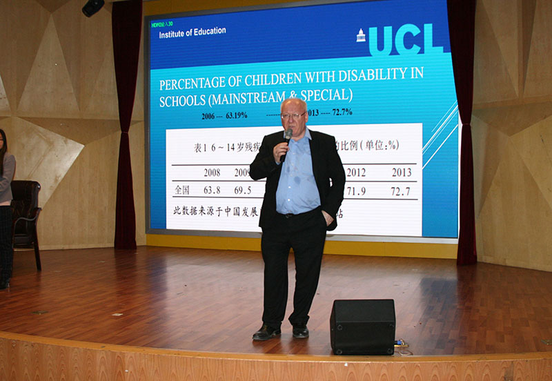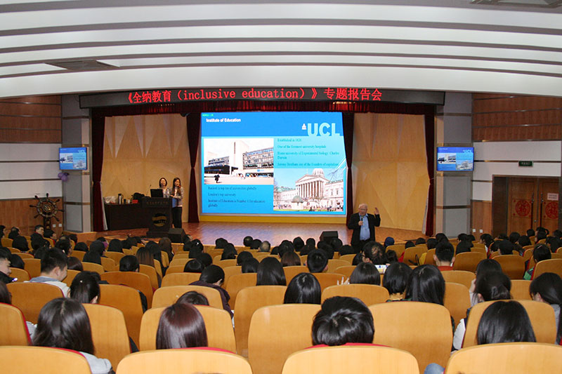 3月24日下午,伦敦大学教育学院Steven Cowan博士应邀到师范学院作《全纳教育(Inclusive Education)》专题报告,学院领导及300余名师生聆听了报告。 报告会上,Steven Cowan博士结合中国实际和最近的走访,运用详实的数据介绍了中国残疾儿童受教育的现状,解析了当下中国残疾儿童在教育公平、机会均等方面存在的问题,由此探讨了残疾儿童全纳教育这一重要课题。他说,每个孩子的学习方式、学习速度不一样,不应该用一把尺子去衡量他们;所有类型的孩子都可以在同一所学校上课,他们享有同等的受教育的权利;每一个孩子都是不同的,都有各自独特的特性、兴趣、能力和学习需求,这些不同不应该成为歧视和排斥学习或行为有问题的学生的理由。演讲结束后,现场师生还就中英教育的差异、小学如何更好地引入全纳教育、全纳教育如何保证课堂教学等问题进行了提问,Steven Cowan博士幽默风趣地进行了解答,现场不时响起热烈的掌声。整个报告会持续了两个小时,现场互动频繁,气氛友好热烈。这次全纳教育专题报告不仅让师生开阔了视野,也让师生对残疾儿童全纳教育问题有了更多思考,可以说是一次教育理念的更新和思想火花的碰撞,必将对今后的教育教学改革有所裨益。 据悉,全纳教育是1994年6月10日在西班牙萨拉曼卡召开的《世界特殊需要教育大会》上通过的宣言中提出的一种全新的教育理念和教育过程。全纳教育倡导教育的人权观、民主观、平等观和价值观,并提出了其课程的教学观。它主张学校应容纳所有类型的学生,反对歧视和排斥,促进积极参与,注重集体合作,满足不同需求,它是一种没有排斥、没有歧视、没有分类的教育。