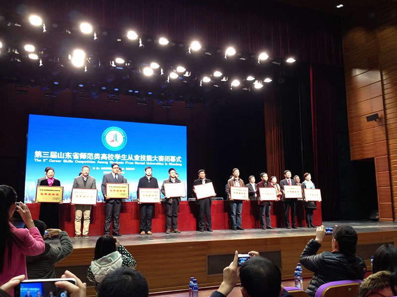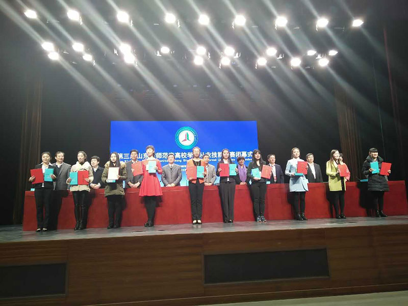 11月22日,第三届山东省师范类高校学生从业技能大赛决赛在烟台落下帷幕。由我院学子组成的青岛大学代表队共13位选手参赛,经过2天激烈角逐,最终取得优异成绩。赵甜甜、张珺、于娟、陈宇嘉、周晓倩等5位同学分获高中化学、初中数学、小学数学、小学英语、高中物理组一等奖,其中赵甜甜、张珺、于娟3位同学成绩位列同组全省第一名,王倩、杨慧娟、严文海、庞晖、姜静等5位指导老师获优秀辅导教师奖,我校获优秀组织奖。