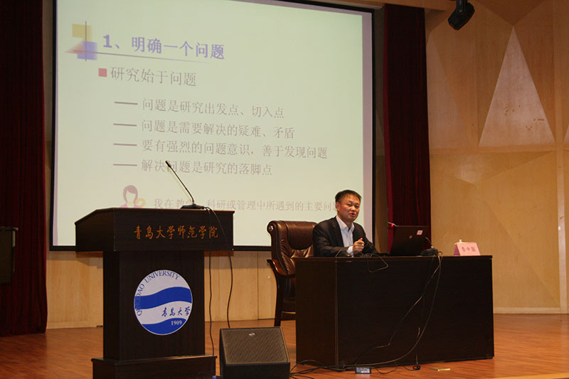 11月20日下午,临沂大学教师教育学院常务副院长、博士李中国教授应邀在我院学术报告厅作了题为《教育科研选题要领与学术规范解析》的学术报告。报告会由校长助理、院长钱国旗主持。教师、研究生约200余人聆听了报告。