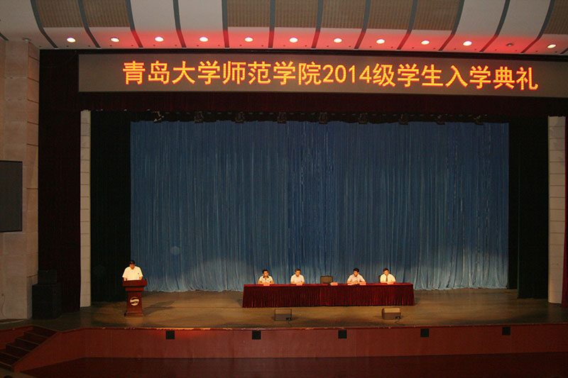 校长助理、院长钱国旗致欢迎词。他首先向加入青岛大学师范学院大家庭的2014级新同学表示最热烈的欢迎和最衷心的祝贺,向哺育培养学生的家长和老师们表示最诚挚的感谢!随后,钱院长向2014级新同学介绍了青岛大学师范学院的发展历史、院系和专业设置、办学理念和办学方向,并与新同学就如何度过大学生活分享了四点体会:一、爱院如家,做学院的建设者;二、转变学习方式,实现自主发展;三、养成手不释卷的习惯,把阅读经典作为思想修炼;四、志存高远,立志做党和人民满意、学生敬佩的好老师。最后,钱院长说:“师院的人脉因为你们的到来而生生不息,师院的精神因为你们的传承而历久弥新,从今天开始,你们将与师院荣辱与共,你们将塑造师院的未来,我对你们充满信心!”