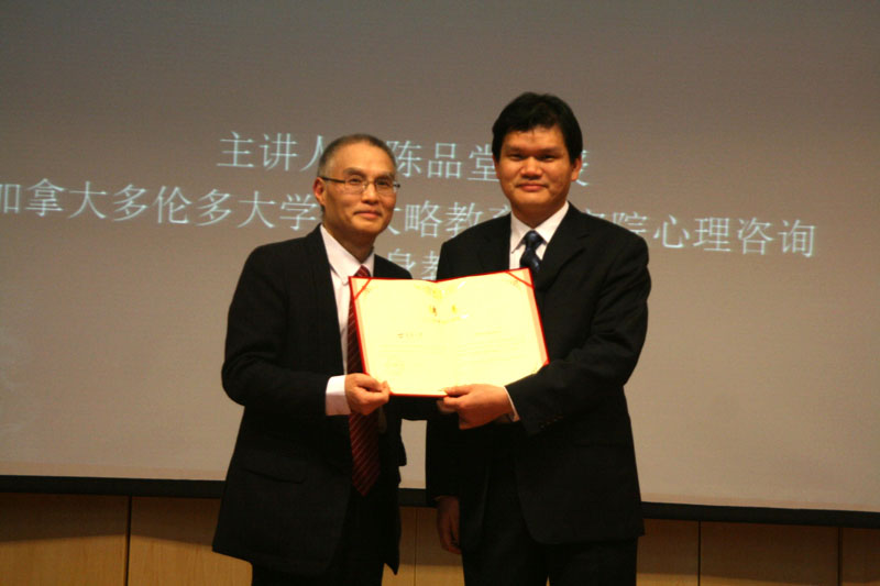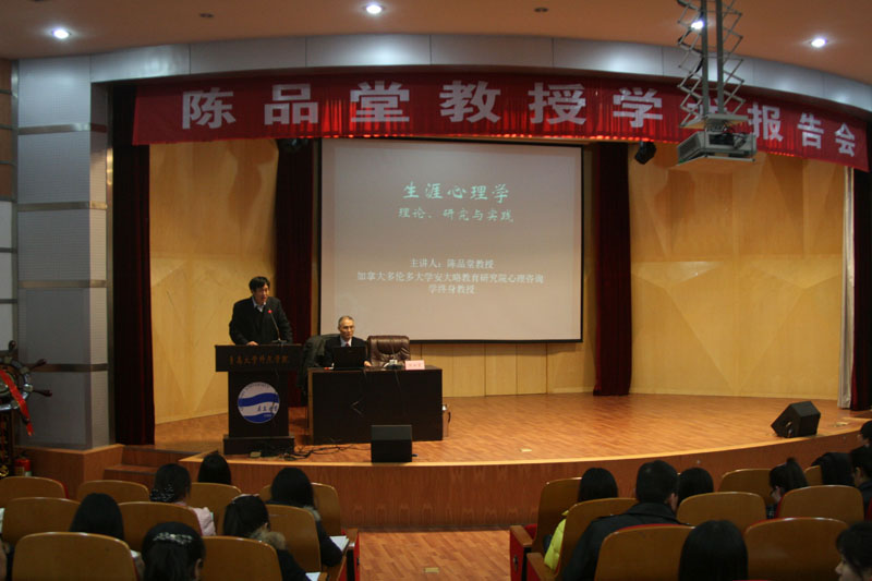1月7日下午,加拿大多伦多大学安大略教育研究院心理咨询学终身教授、博士生导师陈品堂博士应邀在师范学院学术报告厅作了题为《生涯心理学》的学术报告。报告会由师范学院副院长陶明达主持,青岛大学校长助理、师范学院院长钱国旗以及教师、研究生约300人聆听了报告会。