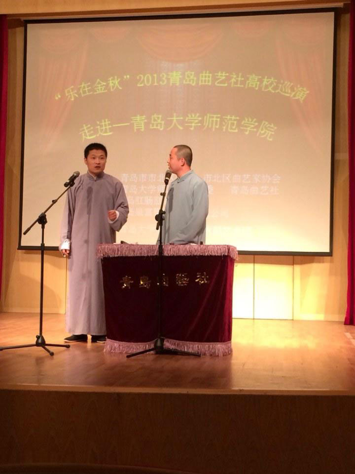 2013年12月3日晚7点,由市北区文联、市北区曲艺家协会主办的 “曲艺进校园”巡演活动走进我院,在院学术报告厅隆重开演。中国曲艺家协会会员、山东省曲协副主席辛维嘉等多位青岛曲协的相声艺术家,院党委副书记万宗喜出席了此次活动。
