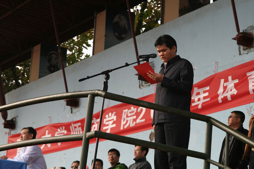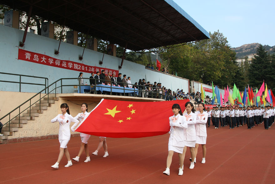 秋风送爽,丹桂飘香。2013年10月18日,青岛大学师范学院2013年体育运动会在我院田径运动场隆重召开。青岛大学党委副书记王大文、师范学院院长钱国旗、书记李正仁、副书记万宗喜、副院长陶明达、修志君、马斗成及各院系负责人出席了开幕式。开幕式由万宗喜副书记主持,钱国旗院长致开幕词,李正仁书记宣布运动会开幕。